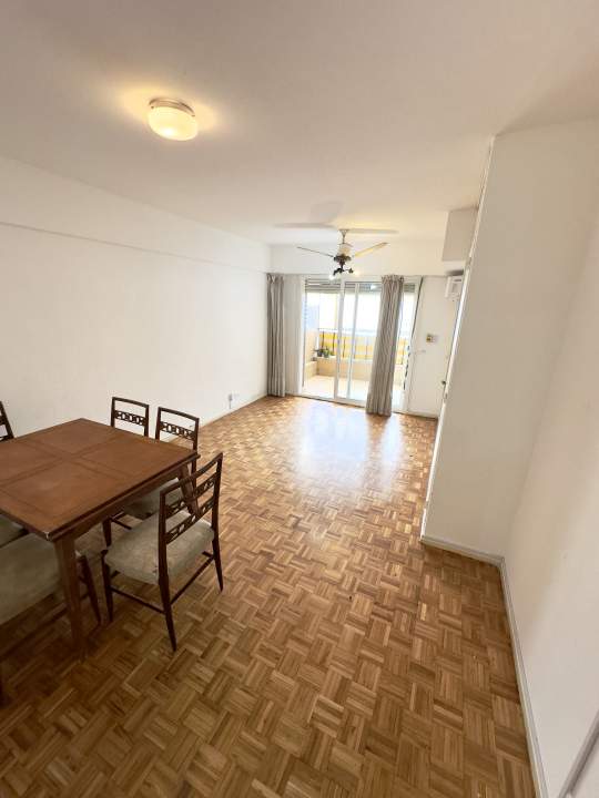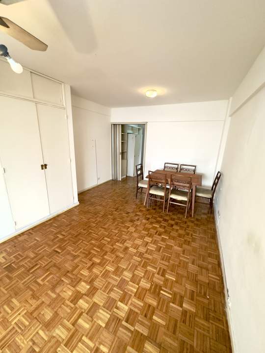 La unidad cuenta con hall de entrada de 3 x 1,80 m, amplio ambiente principal de 5,25 x 3,56 m con salida directa al balcón, pisos de parquet y placard. Cocina independiente de 2 x 1,54 m, equipada con bajo mesada y revestimientos cerámicos.