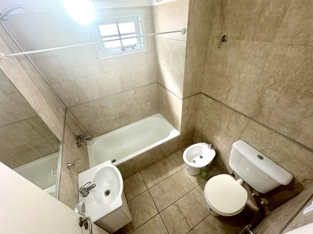 Baño completo con ventilación e iluminación natural.